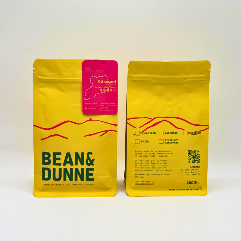 A Ugandan Coffee from the village of Gombe produced by 337 smallholders. At The Coffee Garden's washing station the cherries are dry fermented for 40 hours before being thoroughly washed and dried.